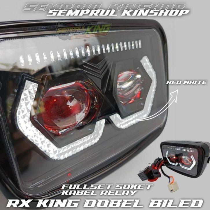 TERLARIS LAMPU BILED RX KING OVAL 2 MATA DOUBLE BILED PROJECTOR HEADLAMP BILED MODEL BURUNG HANTU FULLSET RELAY BONUS SO