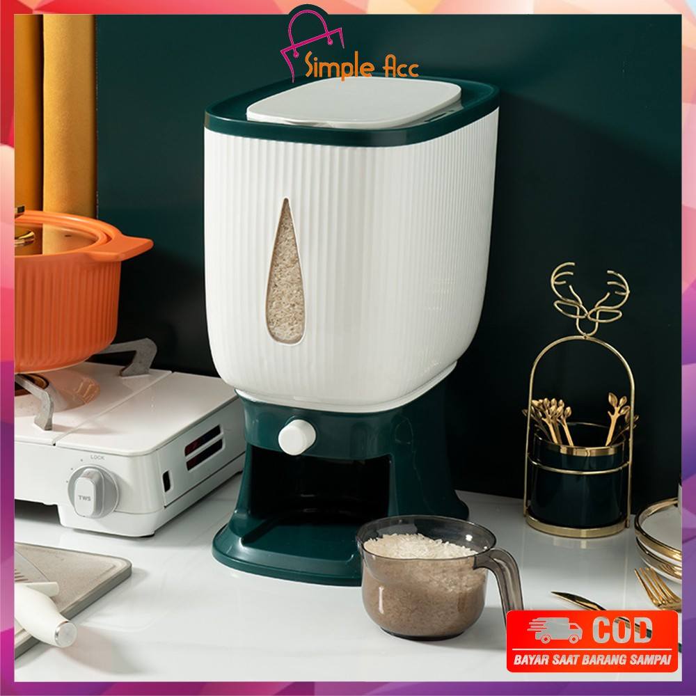 Dispenser Beras 10 KG Rice Dispenser Tempat Wadah Penyimpanan Beras Otomatis Rice Box 10 kg Dengan Wadah Pengering