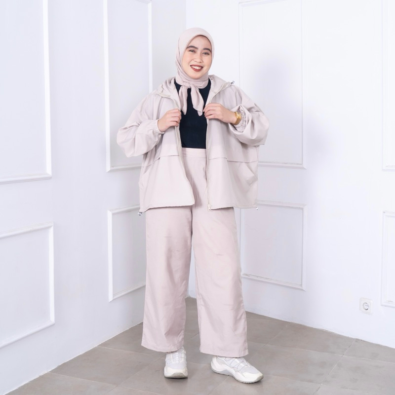 Zave - Nayya Crop Jacket Free Pouch Foldable Praktis Ringan Olahraga Wanita Nilon Oversized