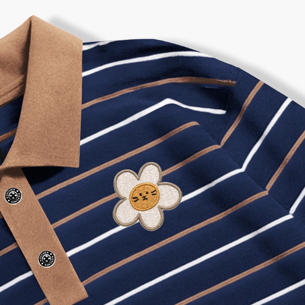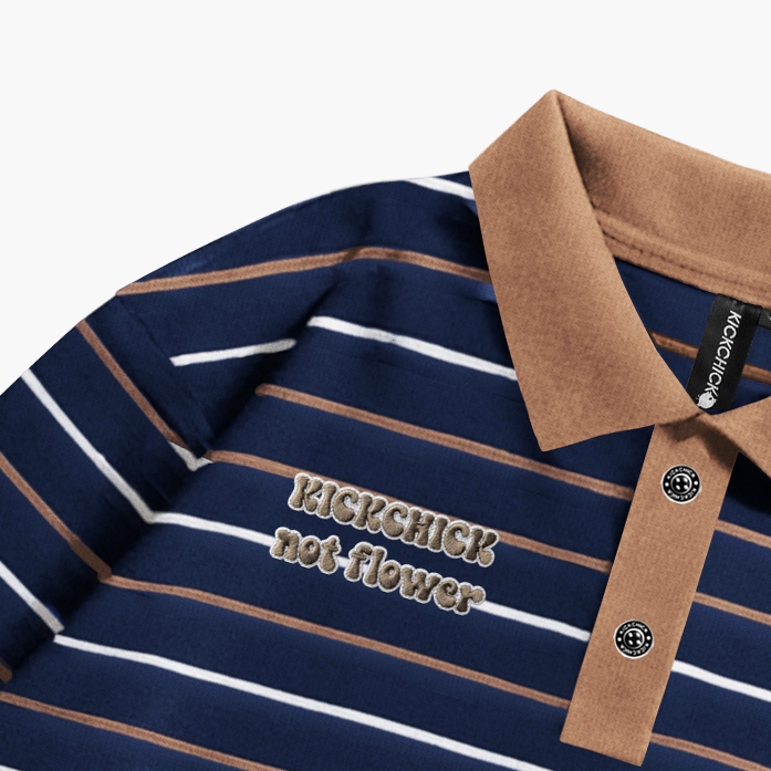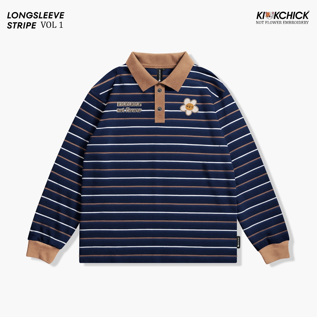 Kickchick Longsleeve Polo Stripe Not Flower Embroidery Mocca | Kaos Atasan | Polo Lengan Panjang Stripe | Kc-Ls-Ps-Strip