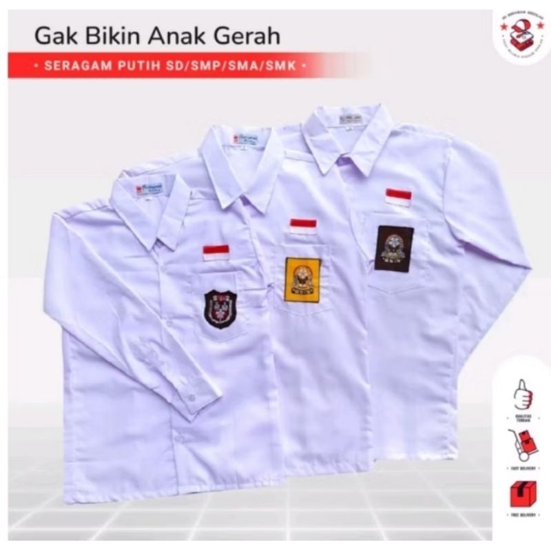 Seragam Sekolah - Kemeja Panjang Putih BED BORDIR SD/SMP/SMA