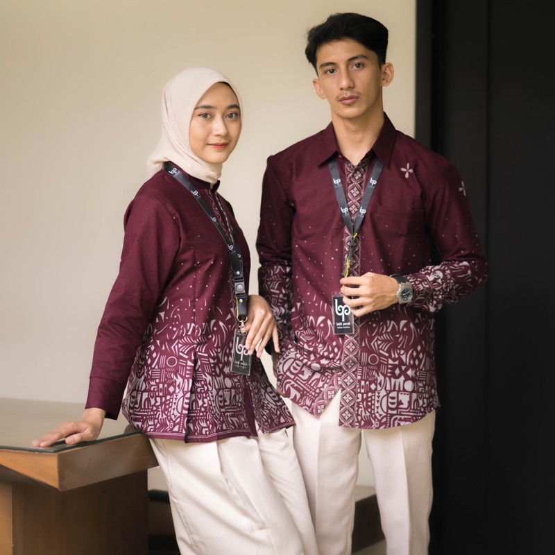 Couple Batik Atasan Pria Wanita Blouse Kemeja Premium Lapis Trikot