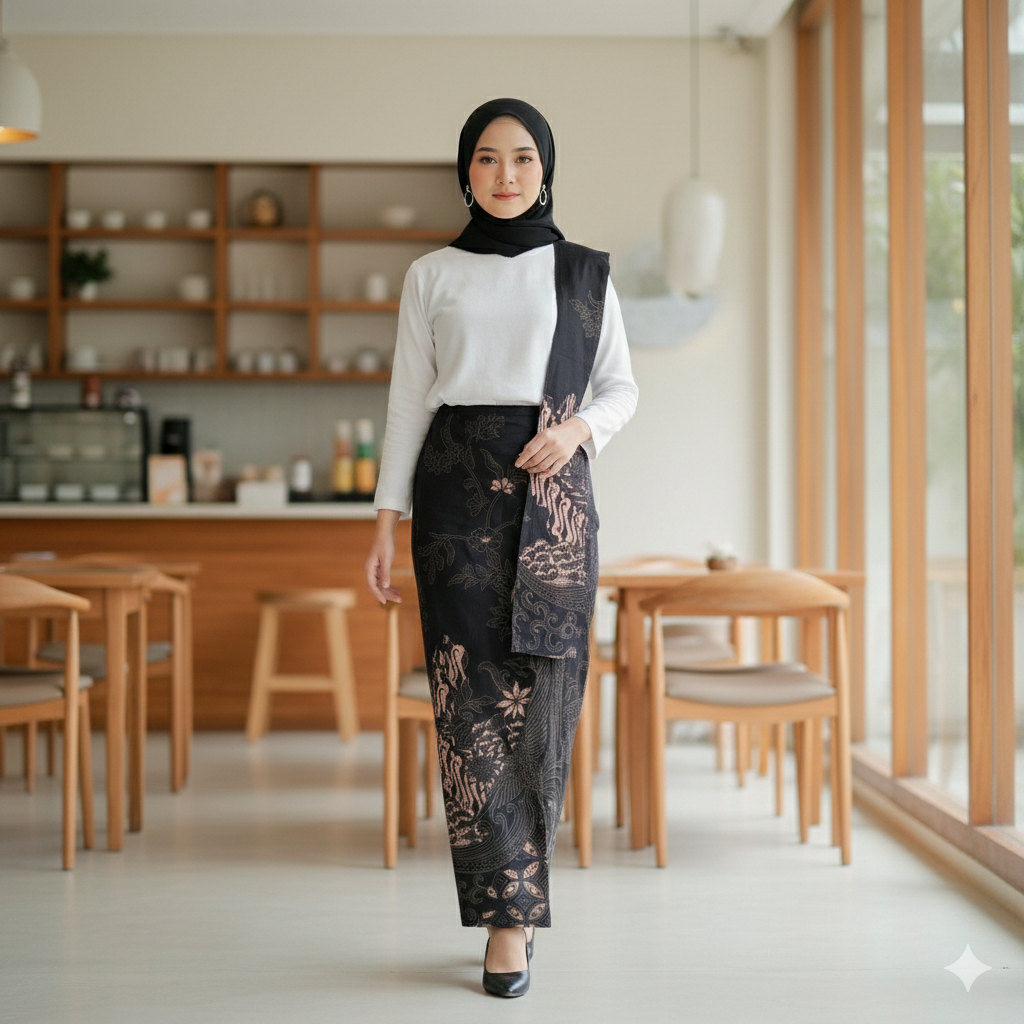 Galeri Batik Ardev - Couple Sarimbit Rok & Kemeja Reguler Warna Hitam Bahan Katun Motif Peksi Seling