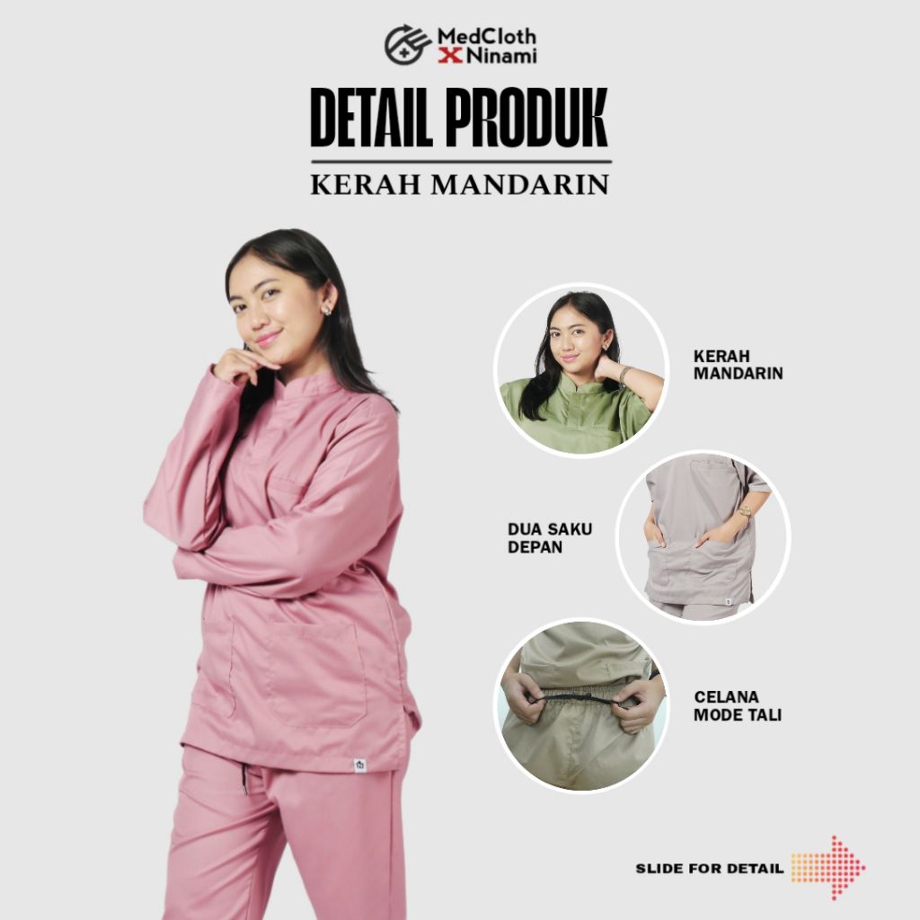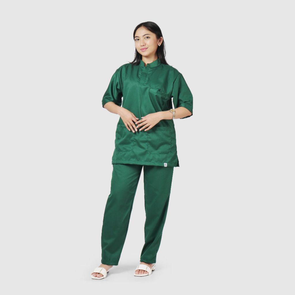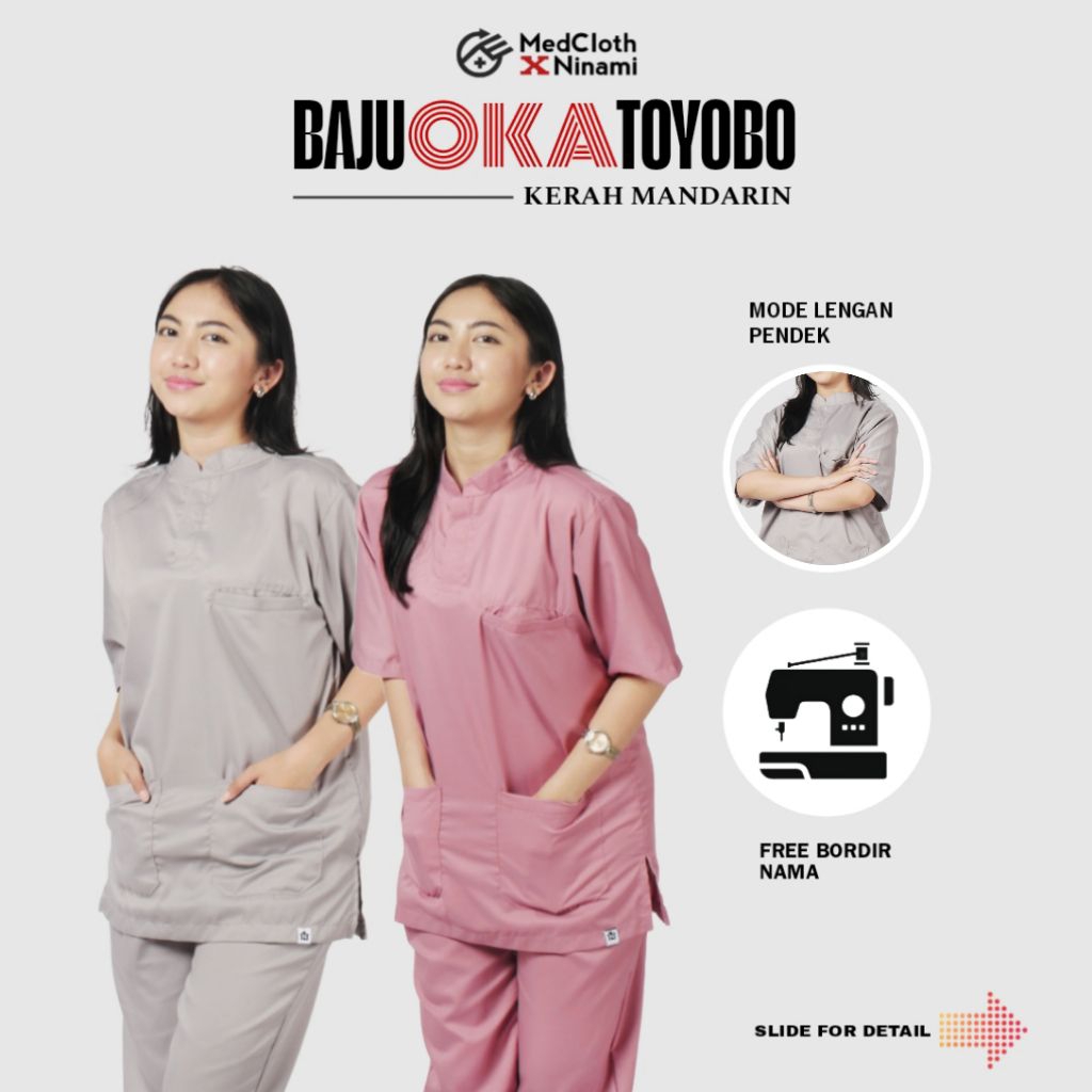FREE BORDIR NAMA Baju OK OKA Lengan Pendek KERAH MANDARIN, Satu Set Baju Perawat Seragam Dokter