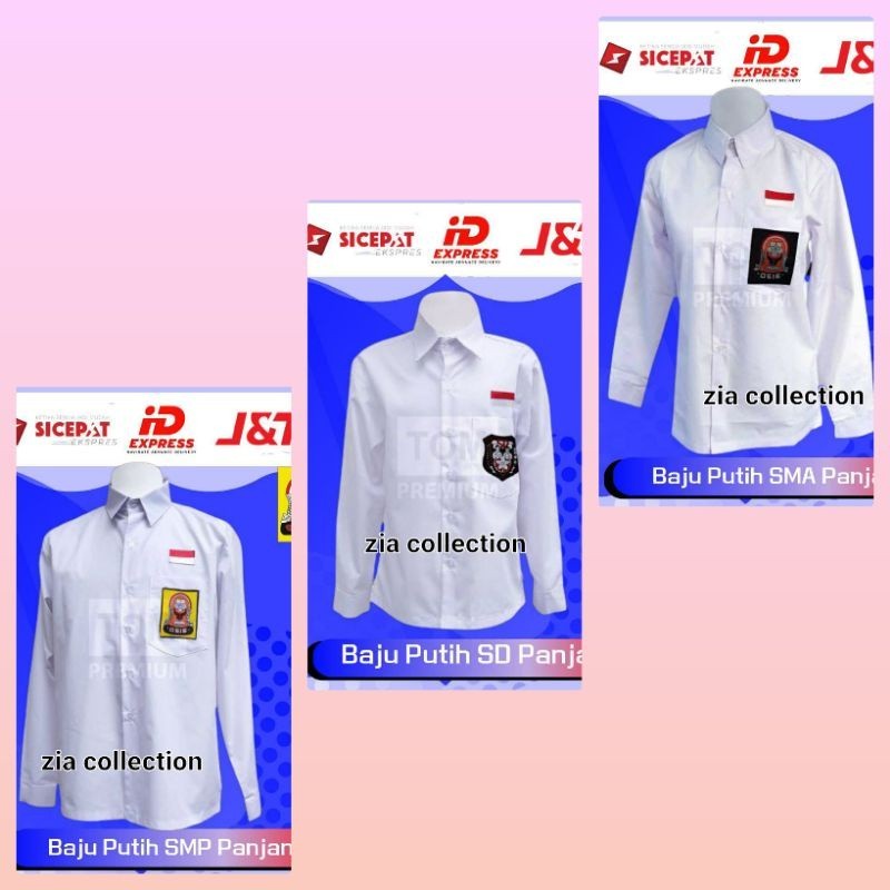 Seragam Sekolah - Kemeja Panjang Putih BED BORDIR SD/SMP/SMA