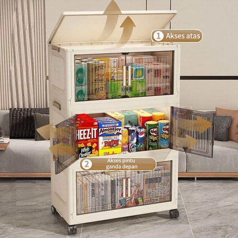 Lemari Pakaian Lemari Plastik Susun Lipat Pintu Ganda Serbaguna Dengan Roda