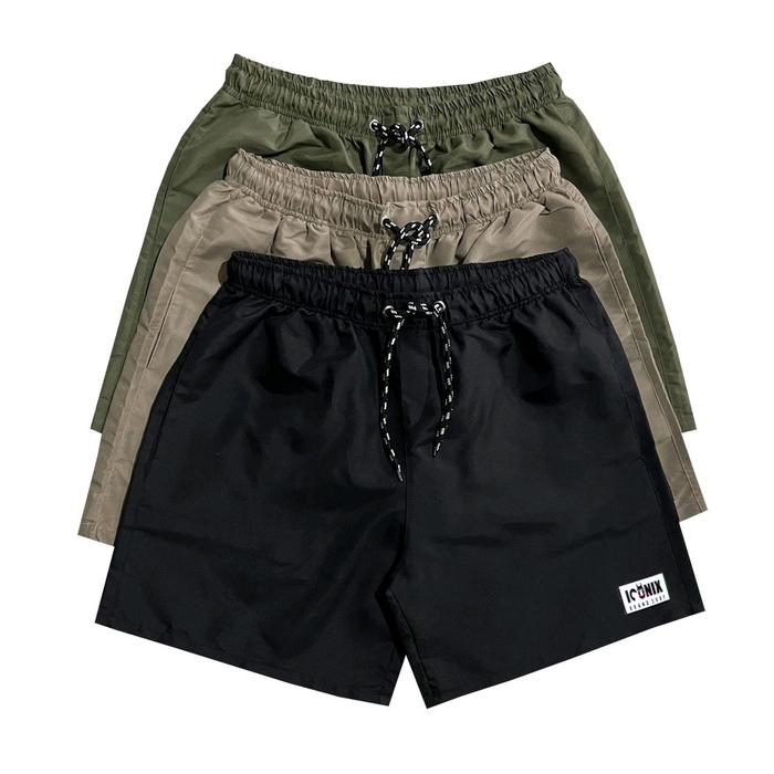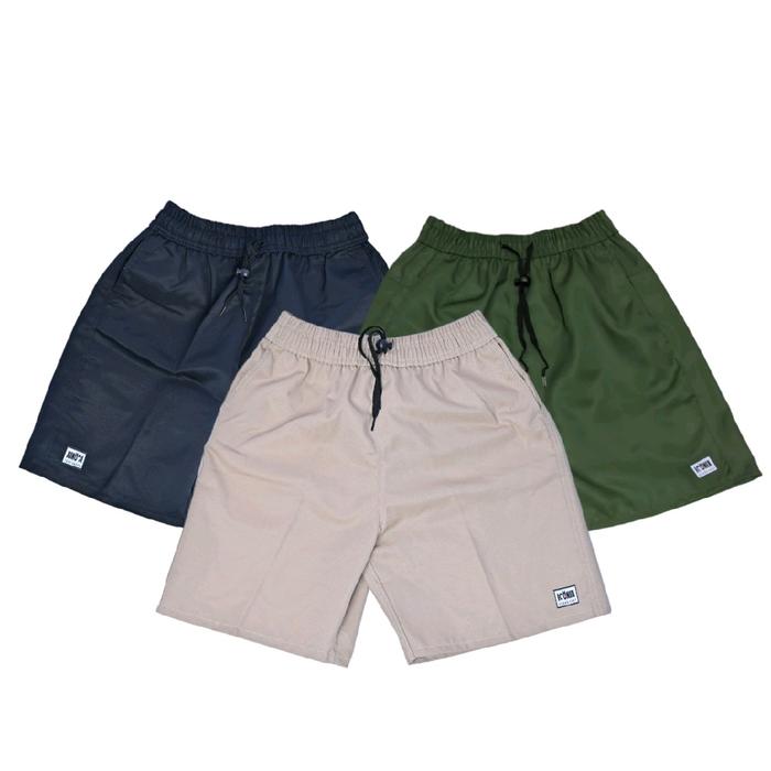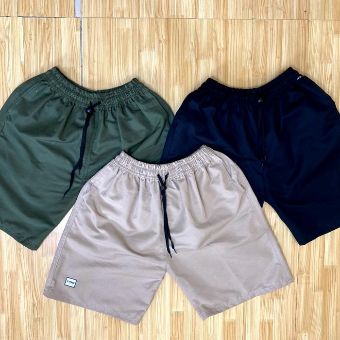 70 Ribu Dapat 3 Pcs Boardshort Pants / Celana Boardshort Santai. Pendek Distro - Hitam, Army, Cream 3Pcs, M-L Bb(40-55)