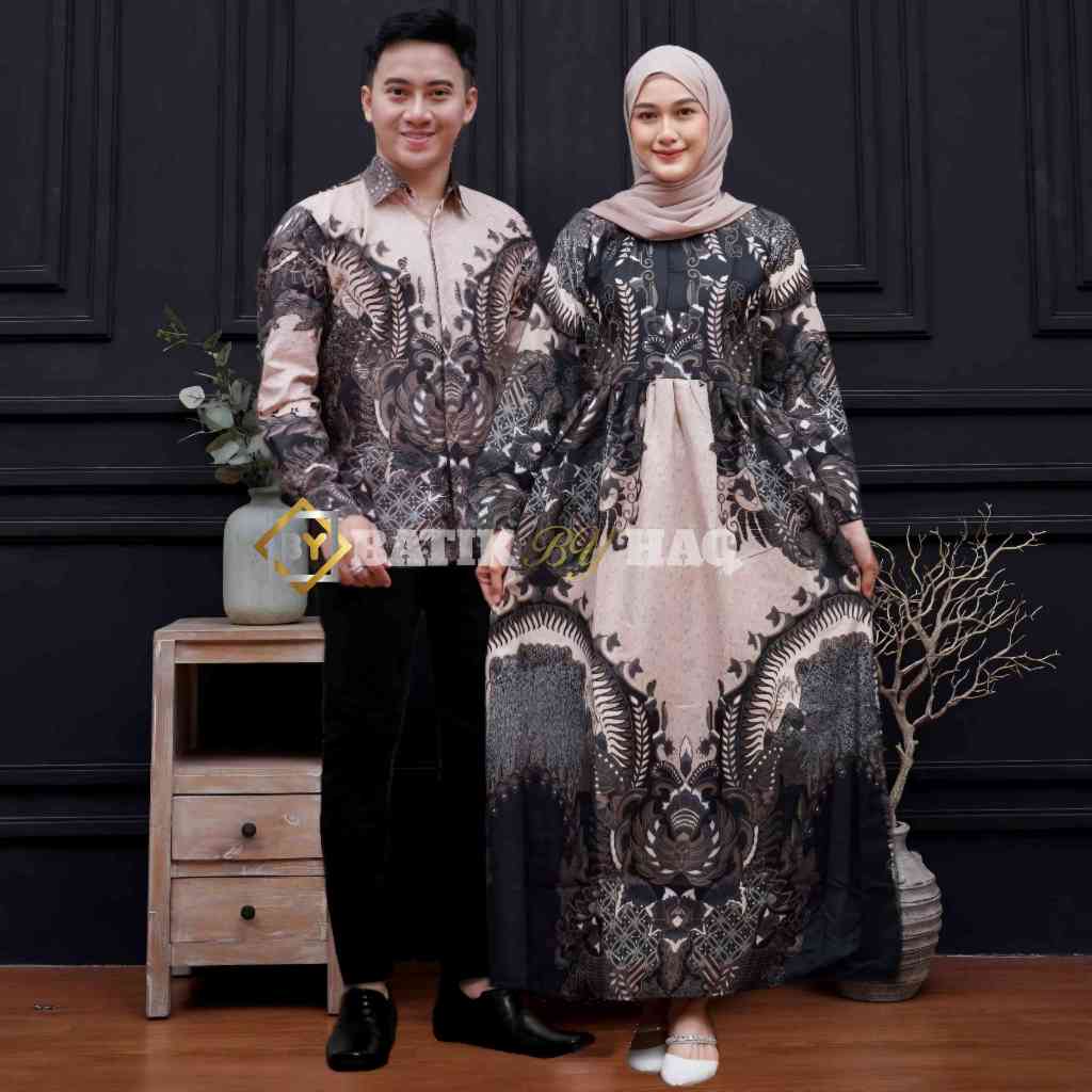 Baju Batik Couple Pasangan Gamis Dan Kemeja Lengan Panjang Sarimbit Motif Terlaris