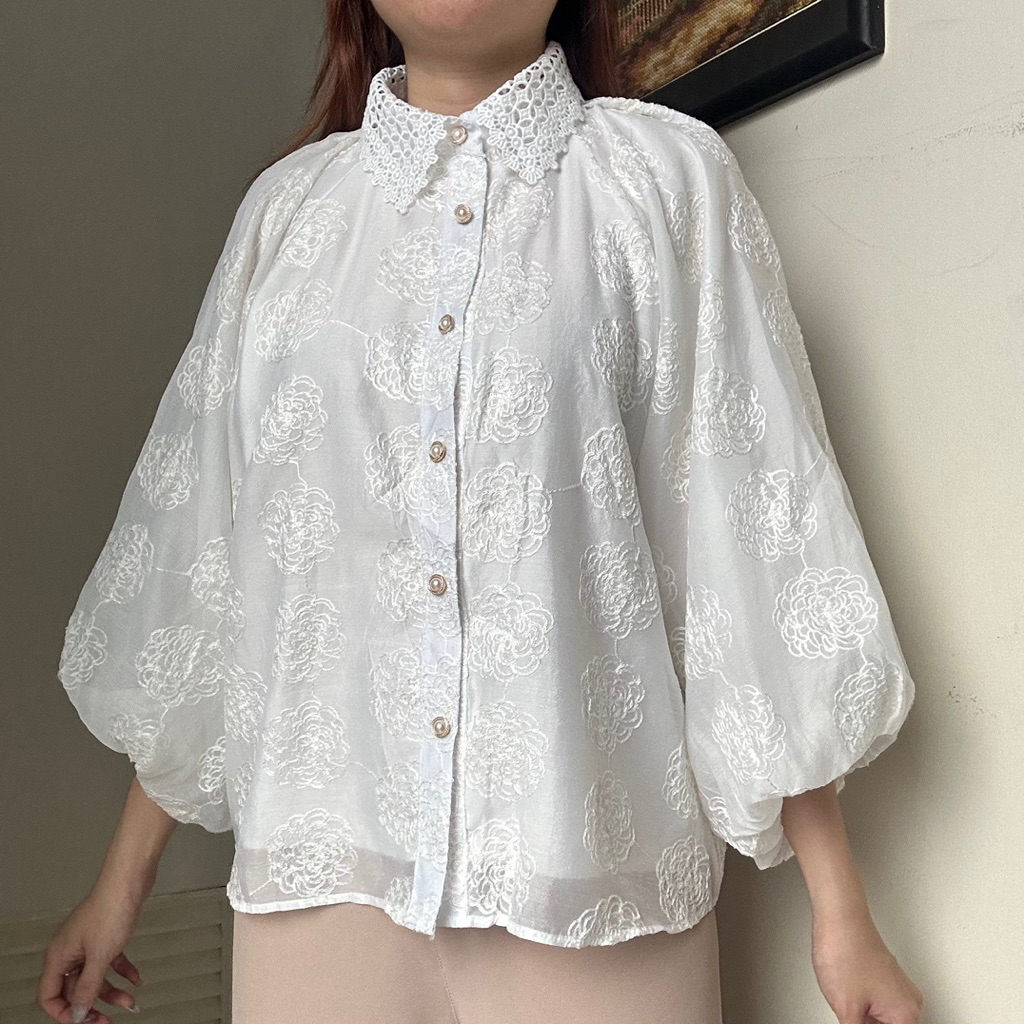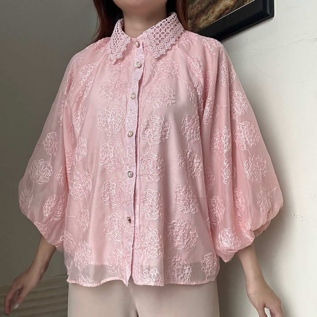 Liliana Top Atasan Blouse Kemeja Wanita Kerja Organdi Bordir Korean Style By Biel The Label