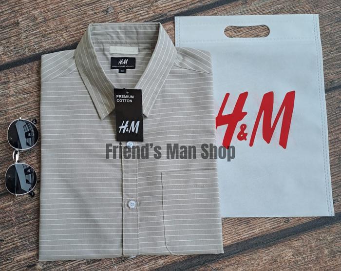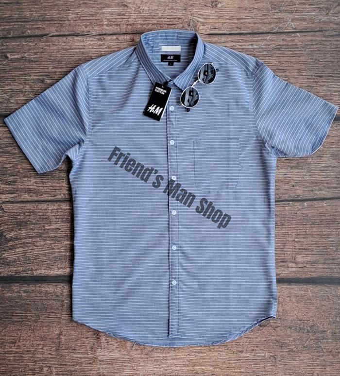 Kemeja Salur Pria Hm Oxford Premium | Kemeja Formal Kerja Kantor Lengan Pendek - Salur Biru Muda, L