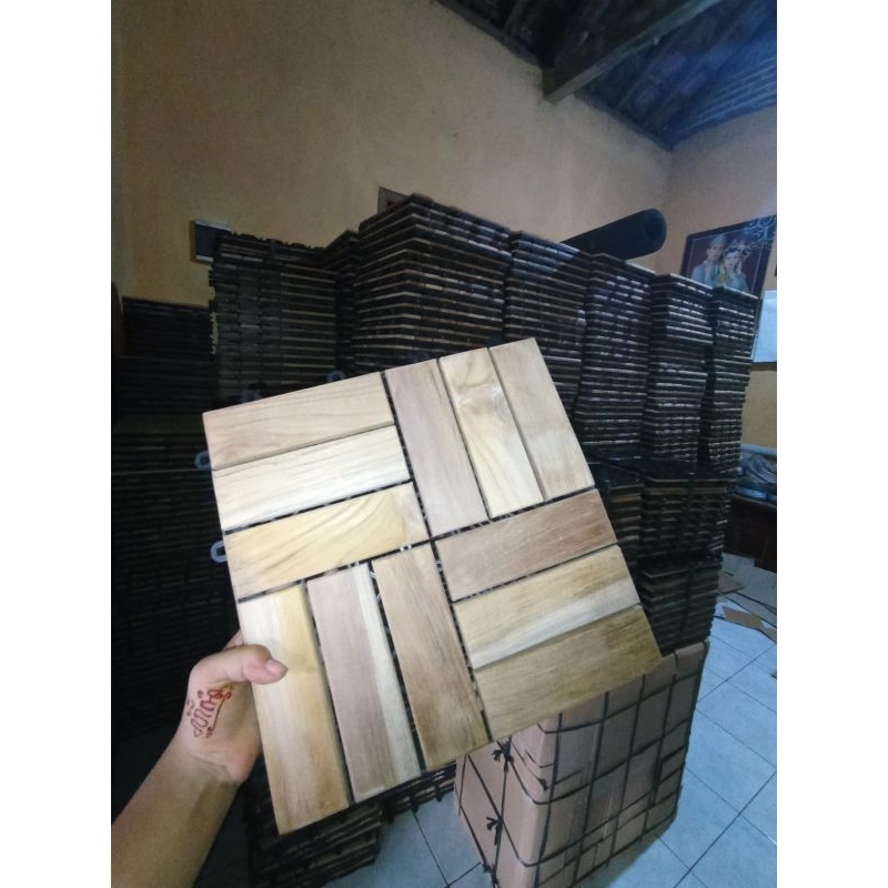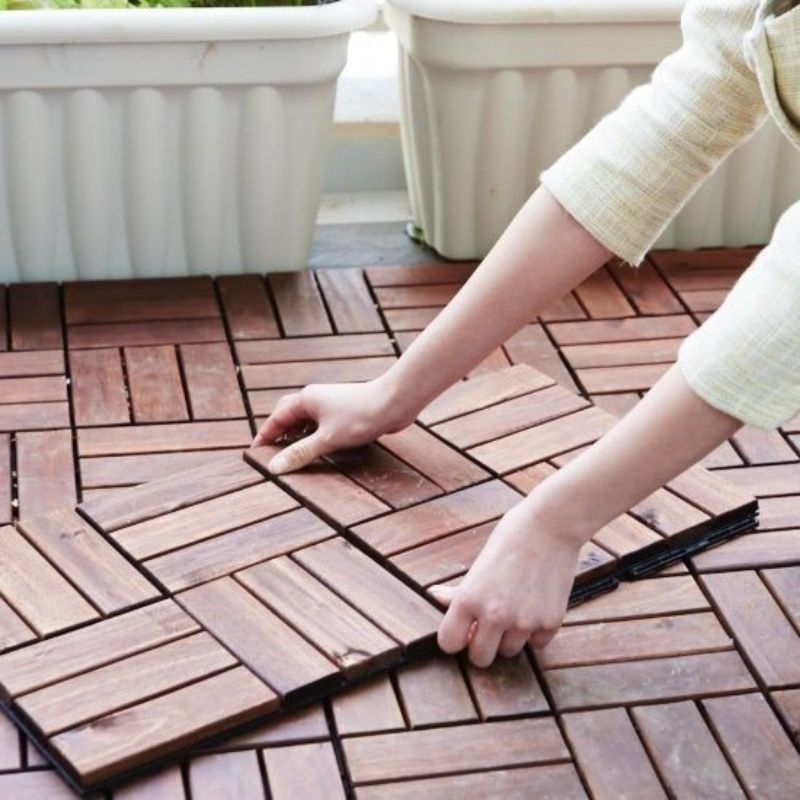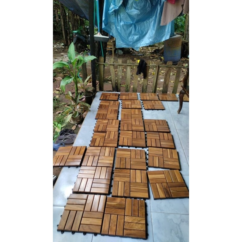 Lantai Kayu Jati decking Tile 30x30cm Ubin Kayu Jati Aesthetic Lantai Kebun Taman Dekorasi Alas Kasur