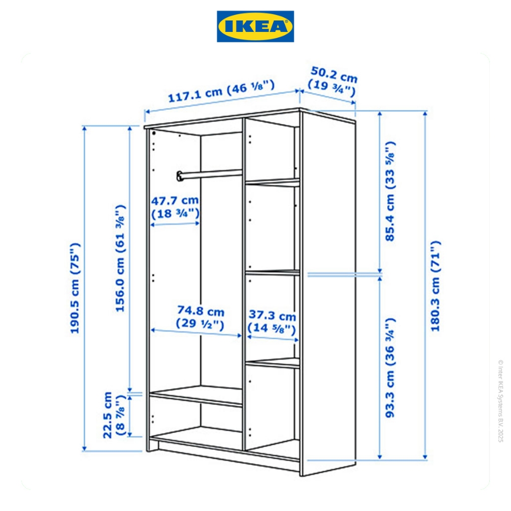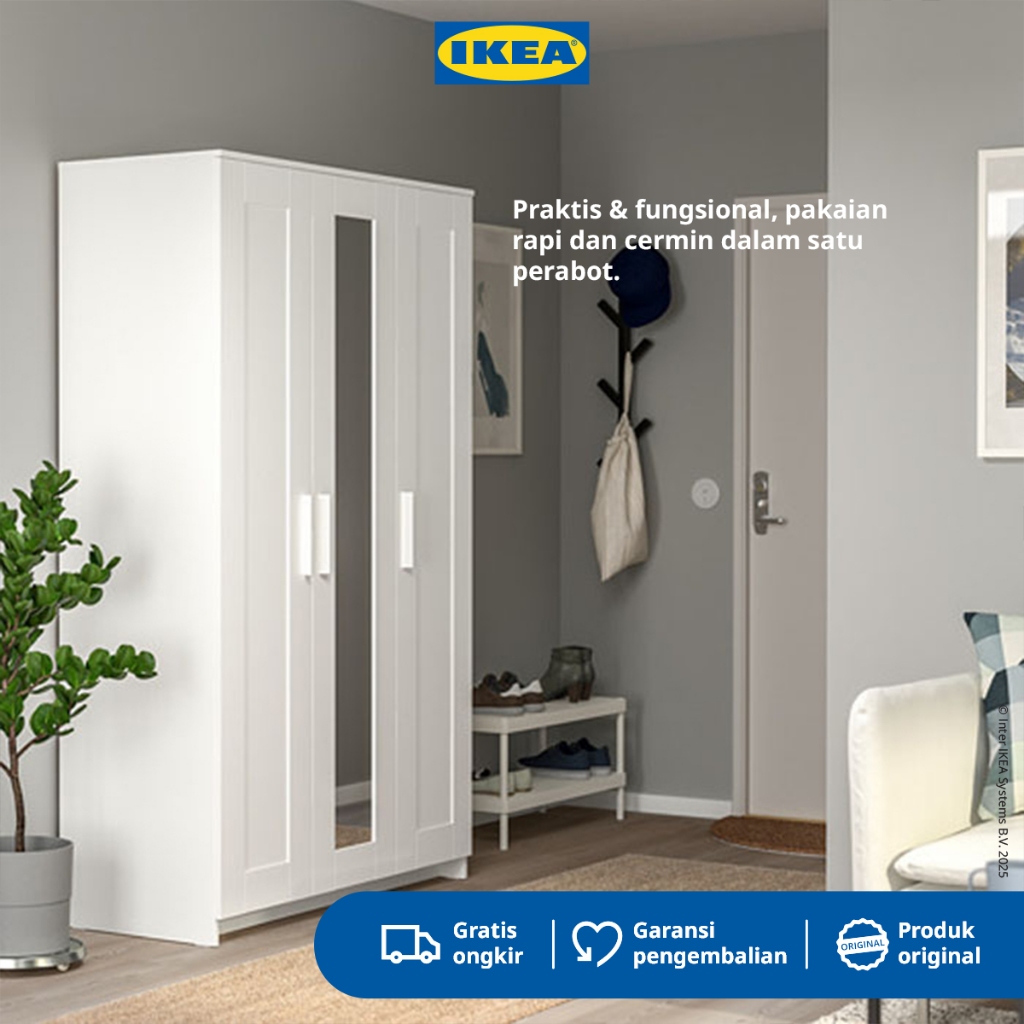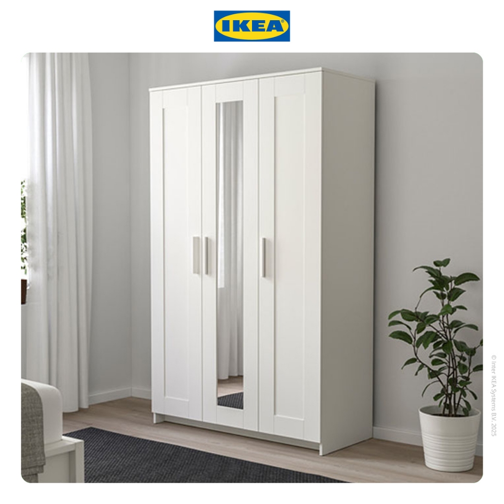 IKEA BRIMNES Lemari Pakaian 3 Pintu dengan Cermin 117x190 cm