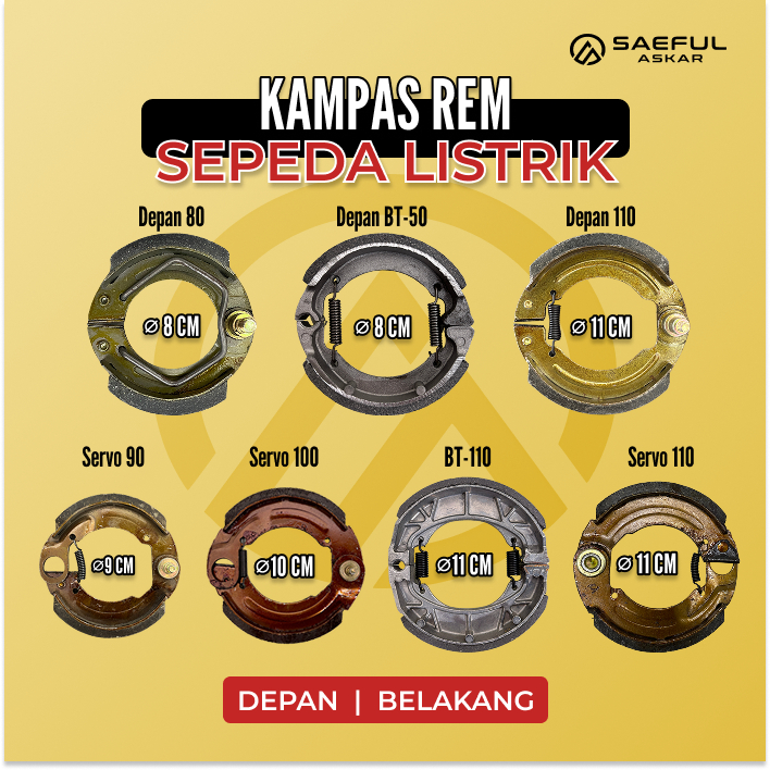 Kampas Rem Sepeda Listrik Berbagai Ukuran