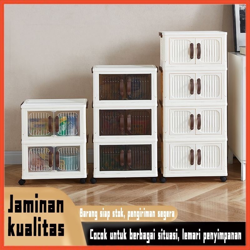 Eatkit Lemari Lipat Plastik 3-6 Susun Portable + Roda | Rak Serbaguna Muat Banyak