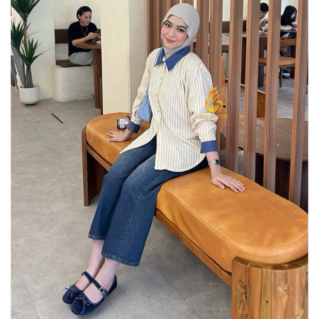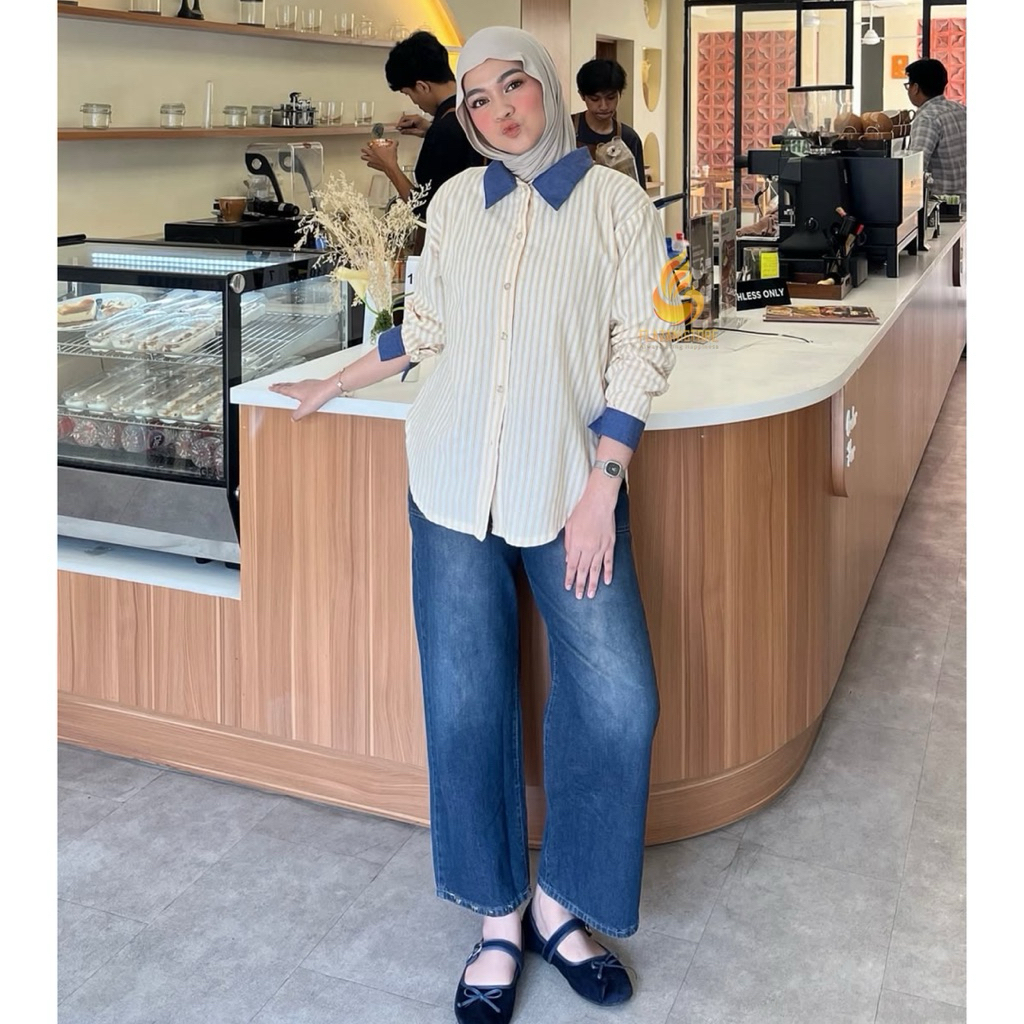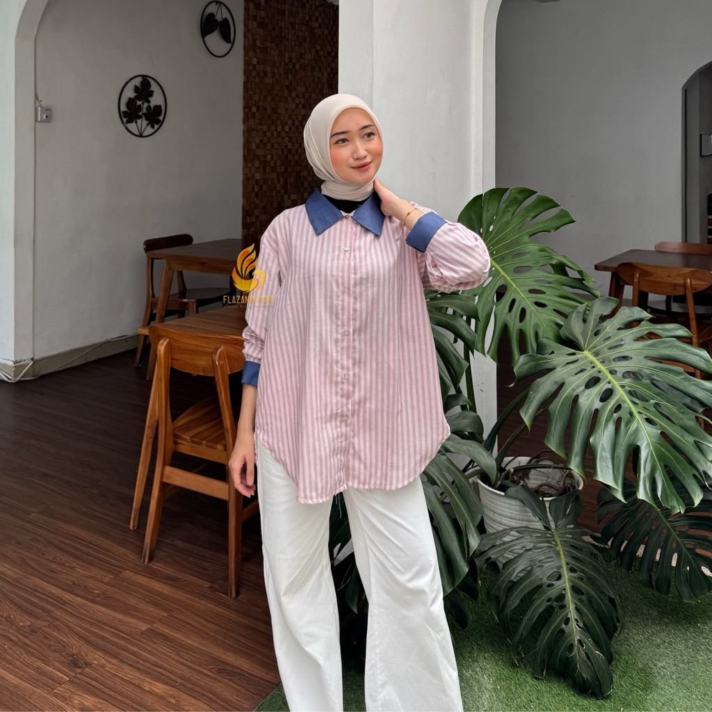 Zani - Eira Shirt - Kemeja Salur Wanita Lengan Panjang - Atasan Wanita Katun Basic