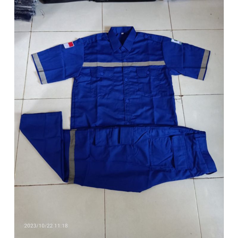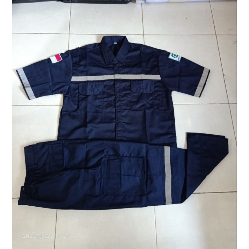 Satu SETELAN lengan PENDEK Seragam kerja safety wearpack katelpak proyek bengkel