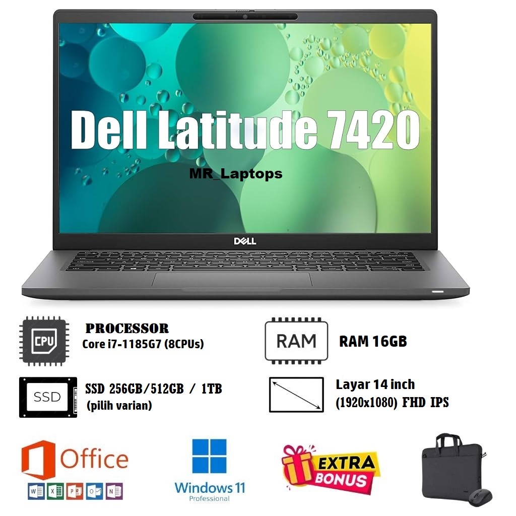 TERLARIS Laptop Dell Latitude 7420 Core i7 Gen 11 Ram 16GB/SSD 512 Free Mouse & Tas