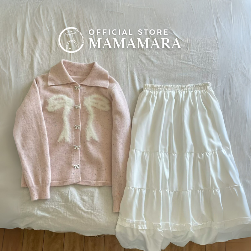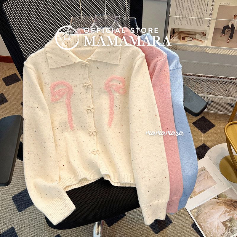 Mamamara - Cardigan Rajut Pita Coquette Bulu Halus Knit Girly