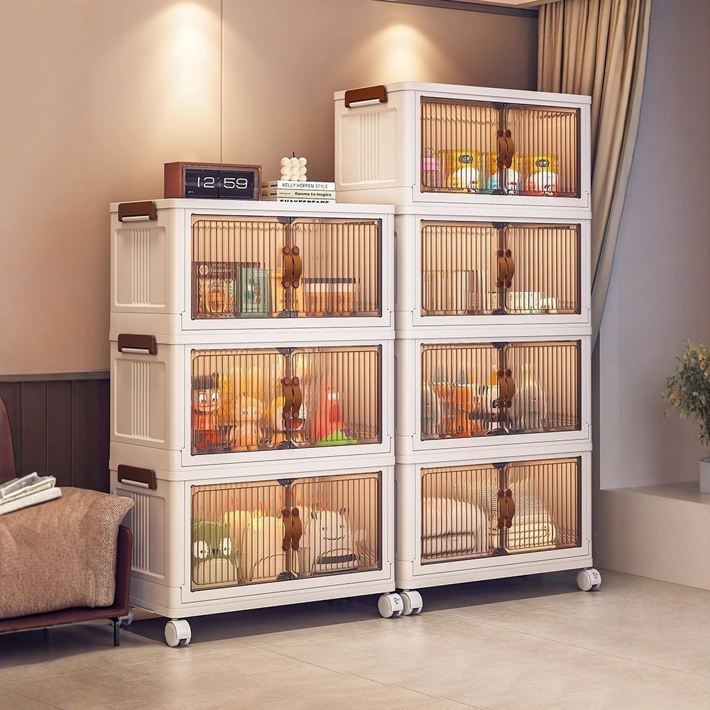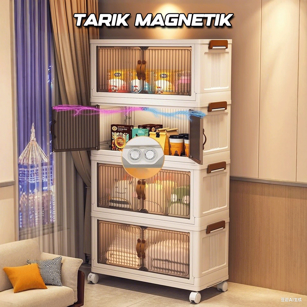 Lemari Plastik Lipat 3-5 Susun Dengan Roda Lemari kos Organizer Hemat R, lemari lipat,Katrol Senyap