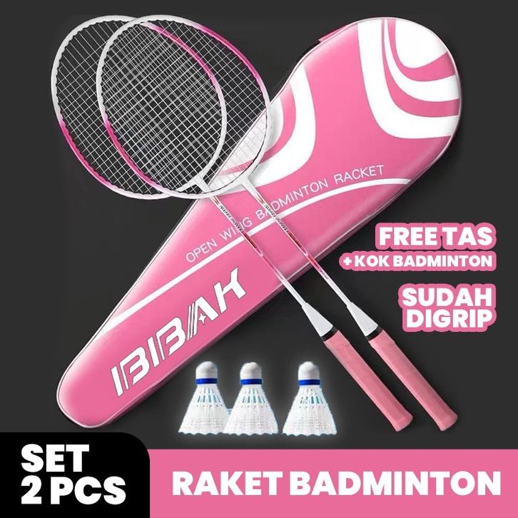 Raket Badminton Raket Bulu Tangkis Paket Komplit Isi 2 Free Bag