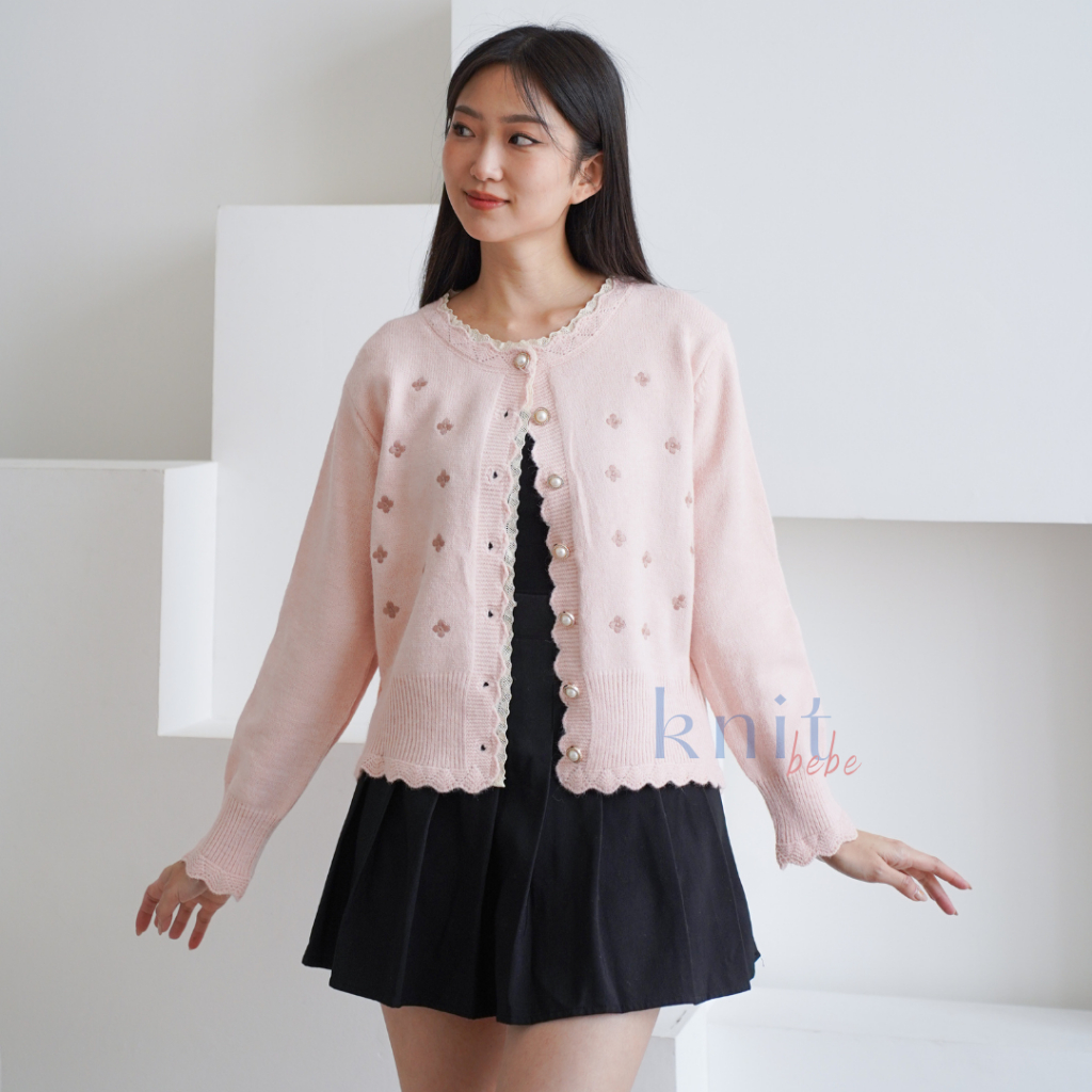 Knitbebe - Mikyung Atasan Cardigan Rajut Knit Top Floral Bunga