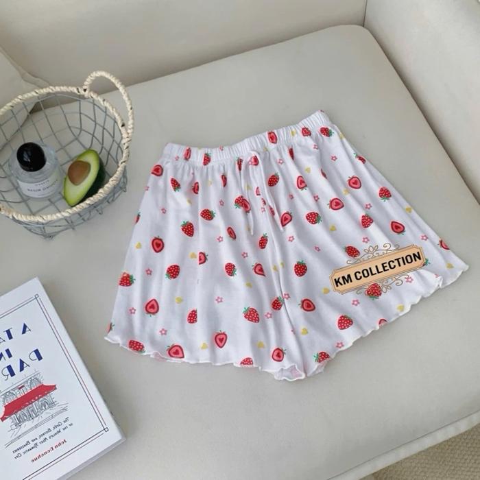 Km Collectionn Celana Pendek Wanita Motif Knit Wear Shorts - Putih Cool, One Size