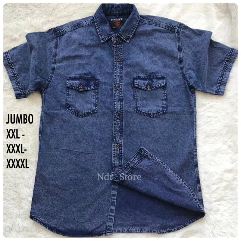 Kemeja jeans jumbo / denim lengan pendek pria terpopuler big Size XXL - XXXL-4L