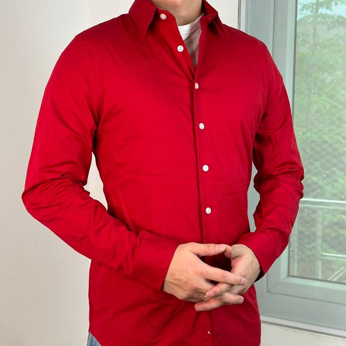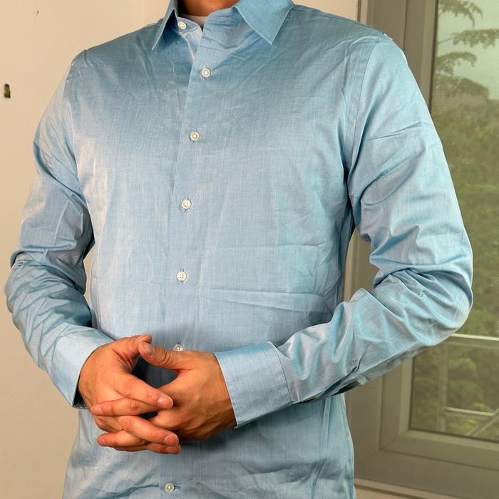 Kemeja Lengan Panjang Katun Satin Chiffon Pria - Sage Green, L