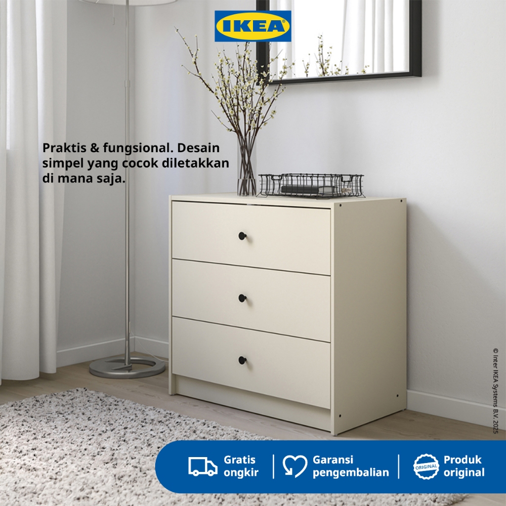 IKEA GURSKEN Lemari 3 Laci Minimalis Krem Muda 69x67 cm
