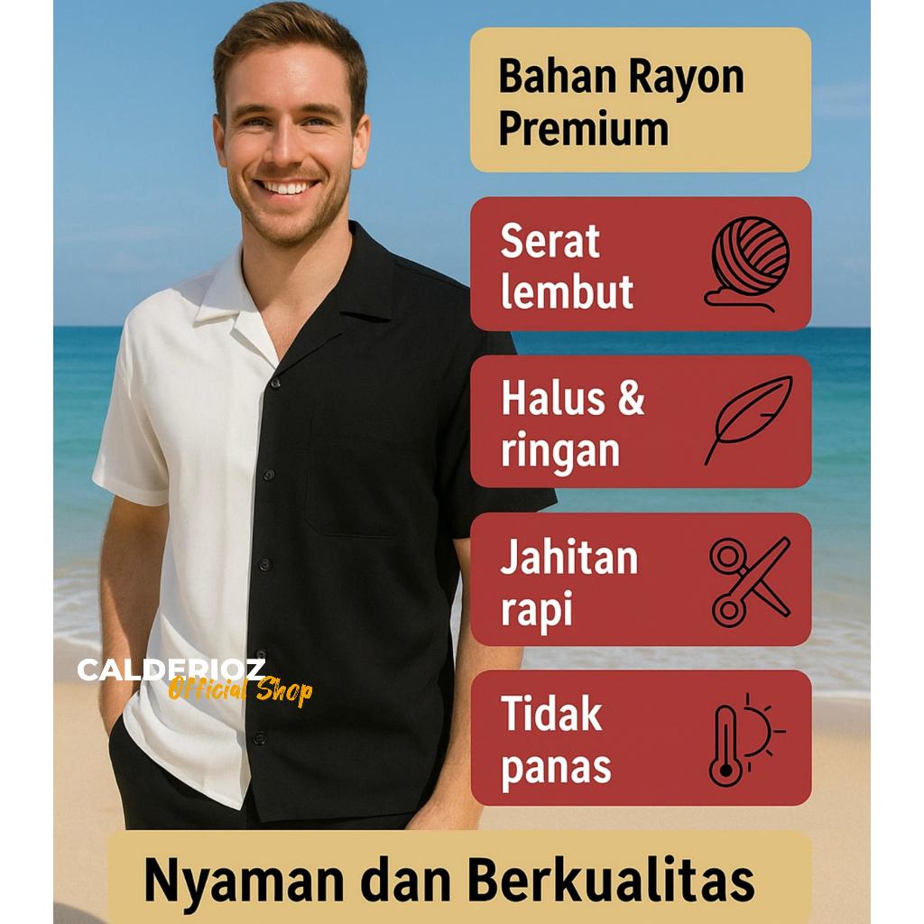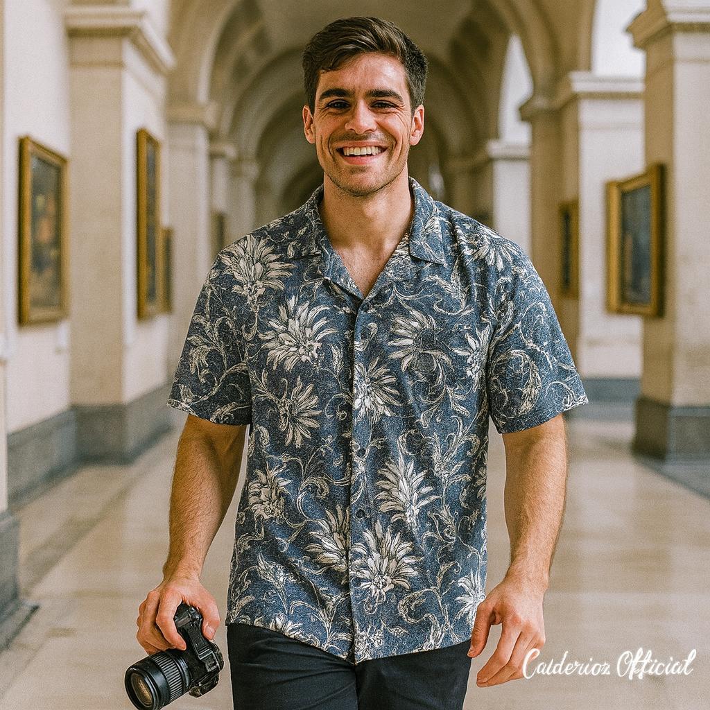 Calderioz - Kemeja Tropis Motif Bunga Classic Dasar Biru Denim Outfit Nongkrong Santai Pria Wanita