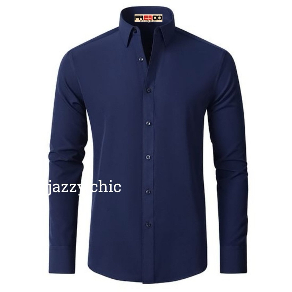 Kemeja Polos Biru Denim | Kemeja Formal | Kemeja Dark Blue Polos Pria Lengan Panjang | Baju Kerja Pria