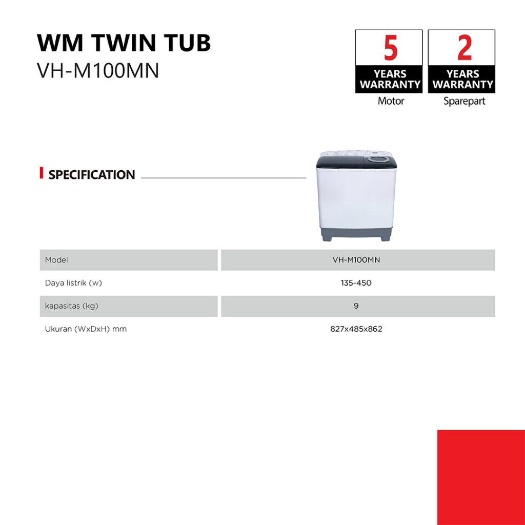 TOSHIBA Mesin Cuci Dua Tabung 9.0kg Model VHM100MN Twin Tub Dilengkapi dengan Ultra Jet Spin