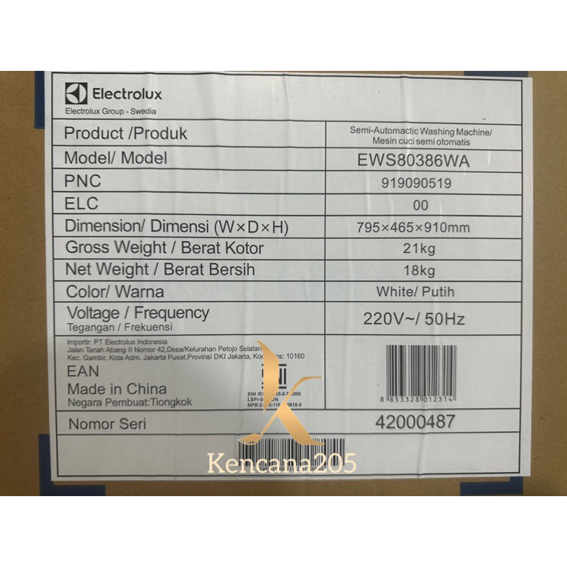 Mesin Cuci Electrolux 2 tabung 8kg 8 kg EWS80386WA EWS 80386 WA Garansi Resmi