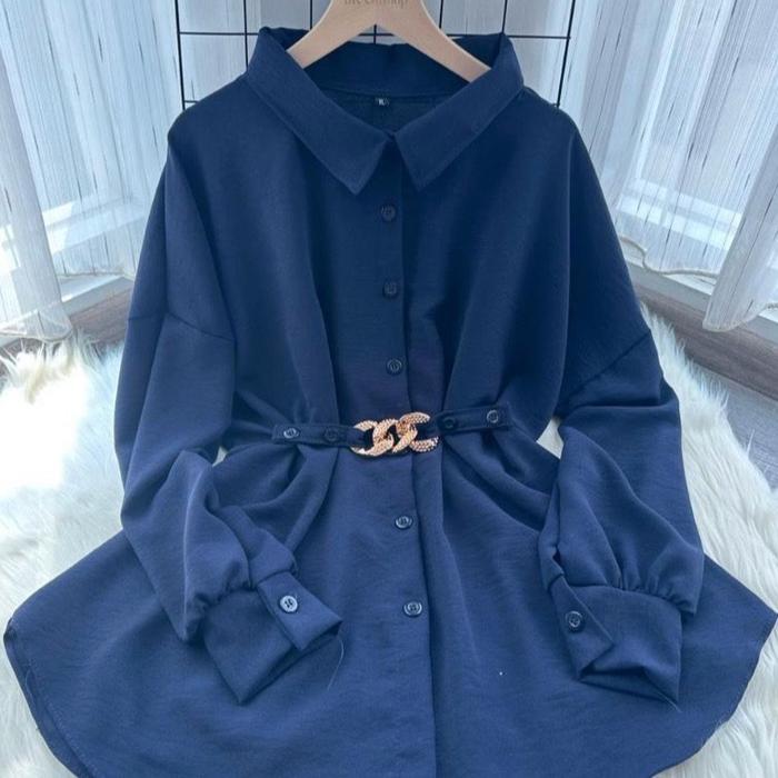 Melda Crinkle Kemeja Kerja Wanita Atasan Polos Korean Style Premium Blouse Terlaris - Putih, S