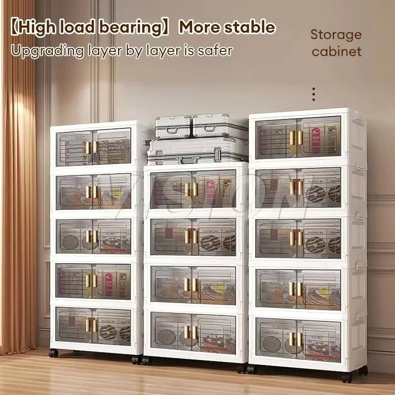 SALVO 35CM Lemari Plastik Lipat Susun/Rak Kabinet Susun Lipat/Rak Buku Serbaguna ada Roda