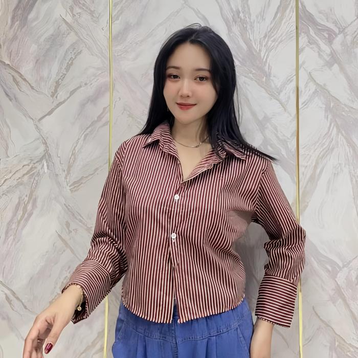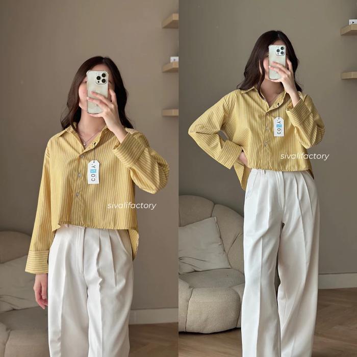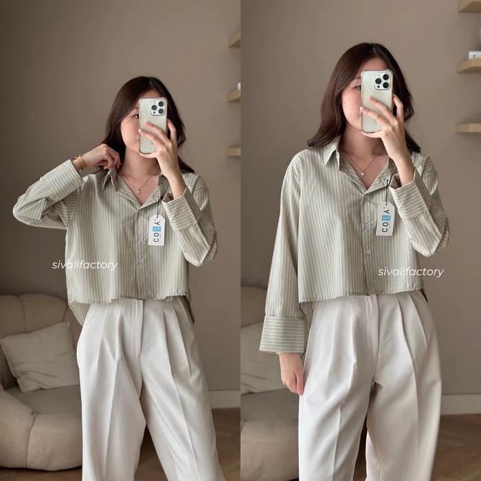 Befa - Ziggy Top || Stripe Shirt - Kemeja Salur Garis Oversized Crop Shirt Atasan Wanita Lengan Panjang Baju Katun - Esp