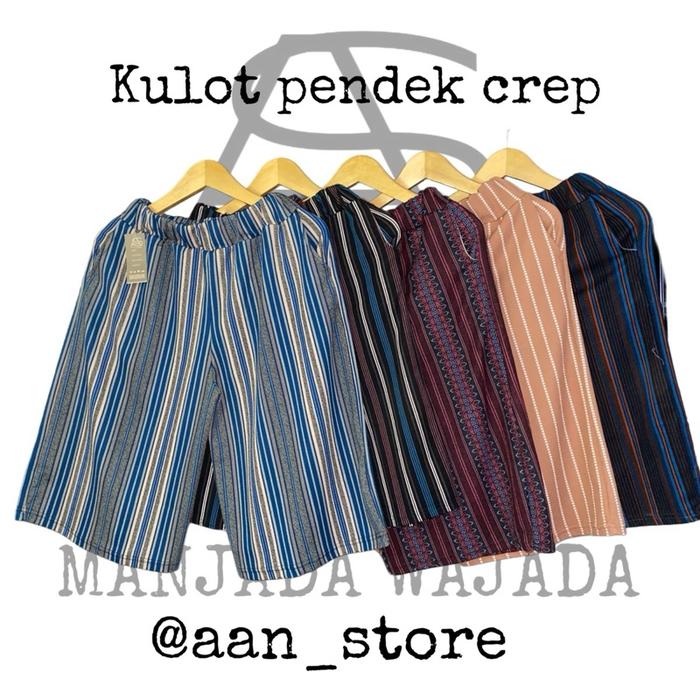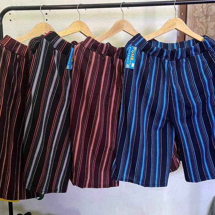 Paket 100K 5 Pcs Celana Pendek Wanita Model Kulot Motif Random Santai Standar Salur Shorts - Random, Standar