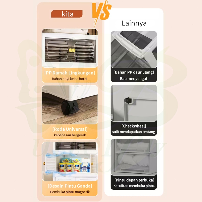【40-60cm Besar】2/3/4/5/6 Susun Lemari Plastik Jumbo Lemari Plastik Lipat Penyimpanan Serbaguna