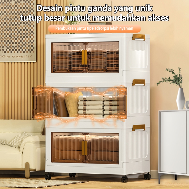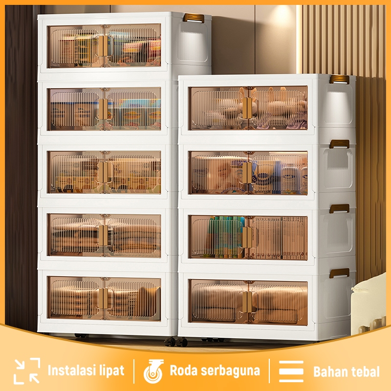 YEEXI 50CM|60CM Wardrobe Storage Lipat 2-6 Susun Lemari Plastik Serbaguna untuk Pakaian Dengan Roda