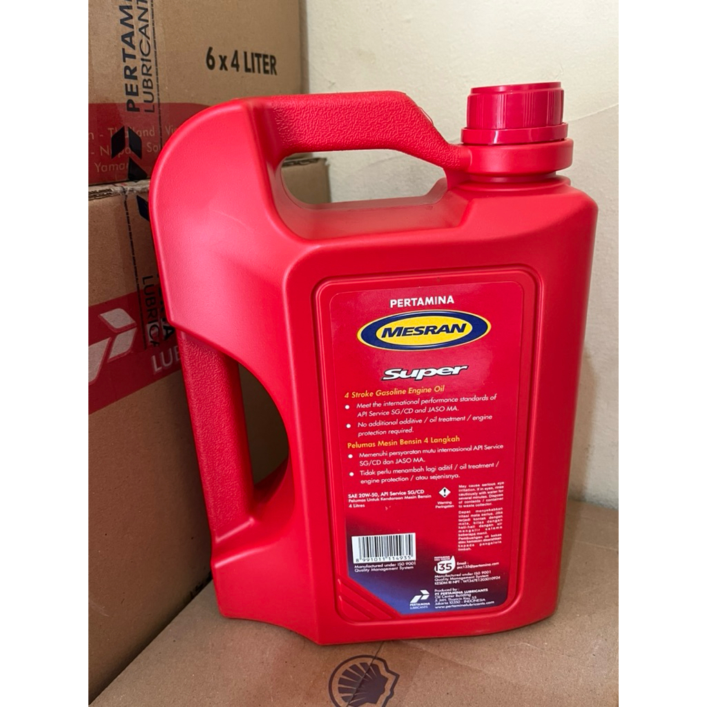 OLI PERTAMINA MESRAN SUPER 4 LITER SAE 20W-50 PELUMAS OIL MESIN MOBIL BENSIN AVANZA XENIA APV GRAND MAX PIC UP CAYLA SIGRA