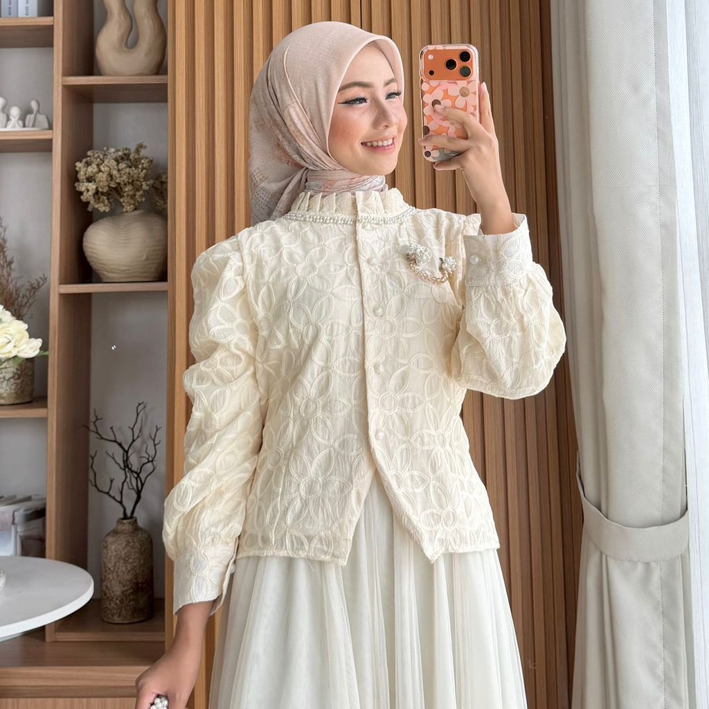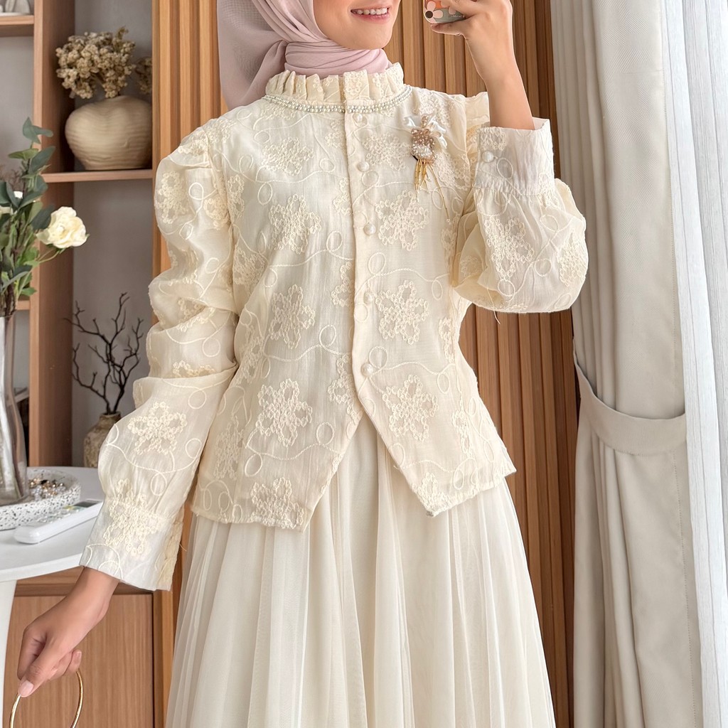 Alice Blouse Pearl Flower Embroidery - Full Furing