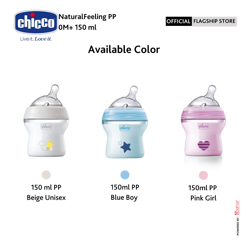 CHICCO NATURAL FEELING ANTI COLIC FEEDING BOTTLE PP 150ML | DOT BOTOL BAYI WIDE NECK PERISTALTIC | BOTOL SUSU BAYI ANAK
