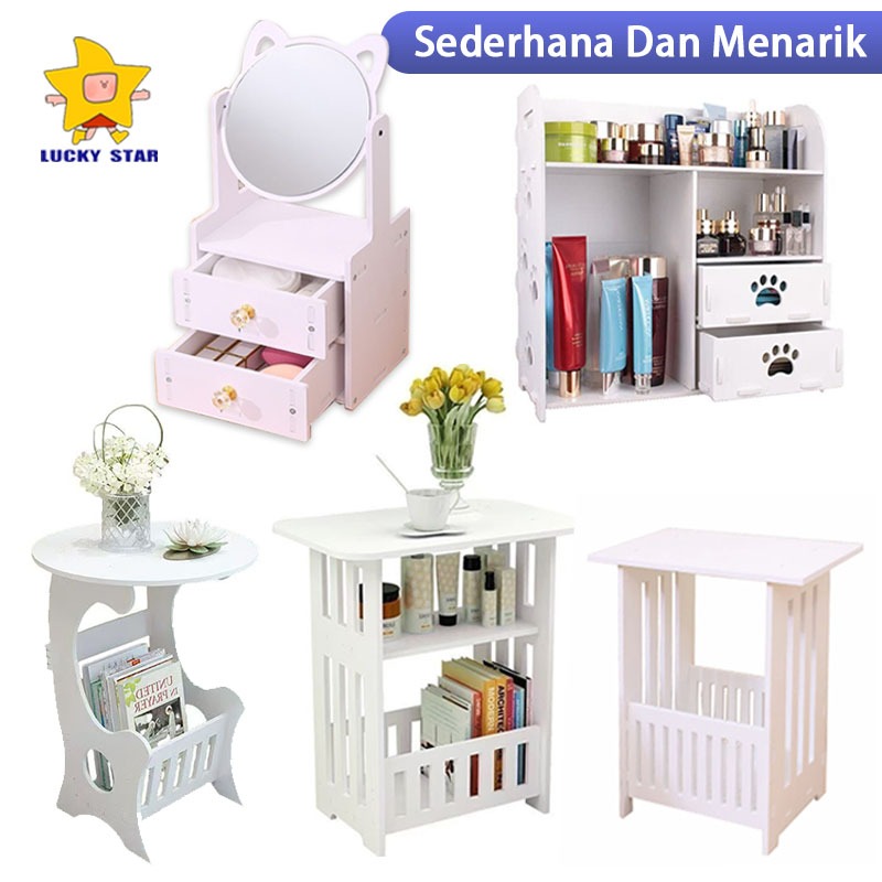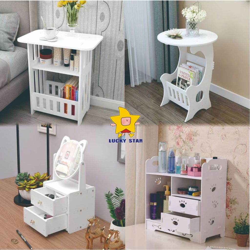 LUCKY STAR Meja Sudut Meja Kopi Meja Majalah Meja Samping Ranjang Meja Kotak Kecil Meja Tamu minimalis Rak Kosmetik