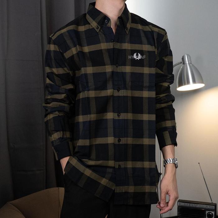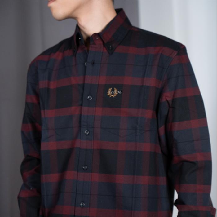 Fred Perry Tartan Long Sleeve Shirt Kemeja Lengan Panjang Original - Oxblood, M