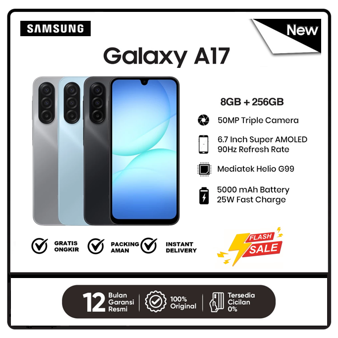 SAMSUNG GALAXY A17 4G 8/256GB - GARANSI RESMI Helio G99 NFC Super AMOLED Kamera 50.0 MP 25W Fast Charging