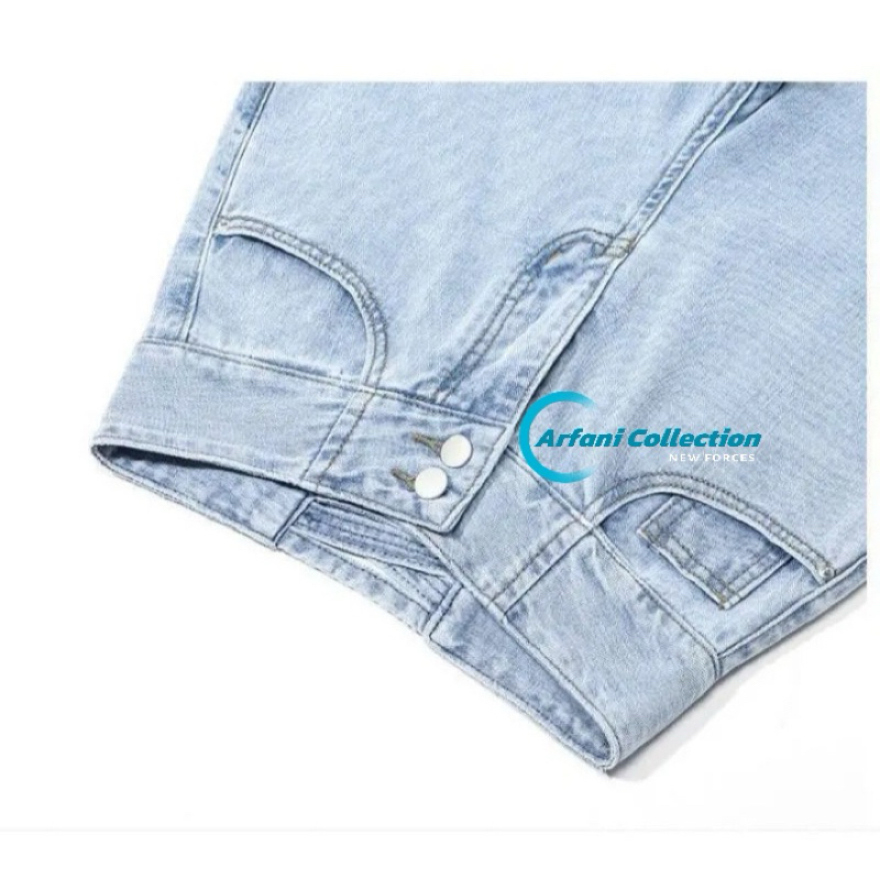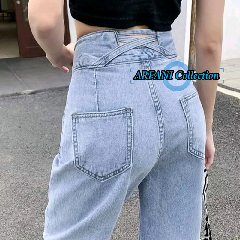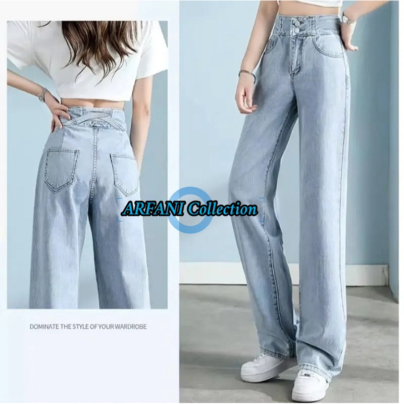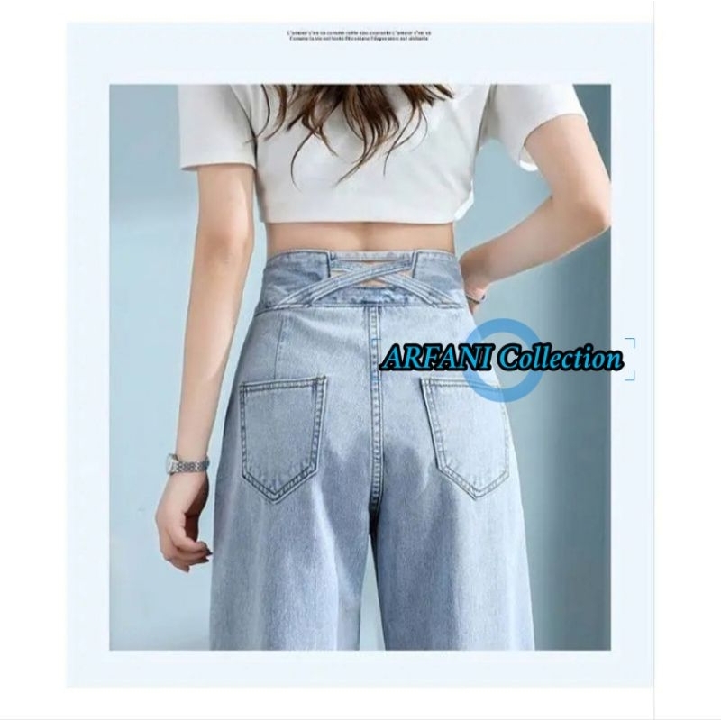 ARFANI - J23 Celana Panjang Highwaist Kulot Silang Jeans Wanita Double Button 2 Kancing Boyfriend