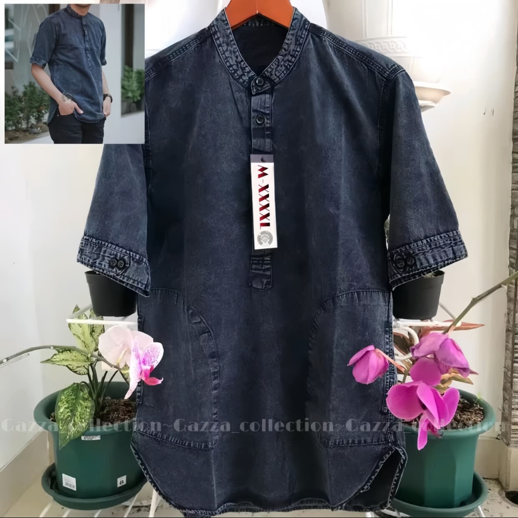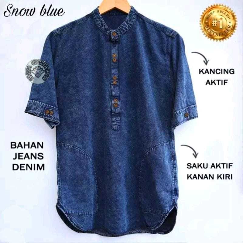 Kemeja Koko kurta Jeans Kurta Denim size M,L,XL,XXL,XXXL Baju Muslim Pria Distro Dewasa Atasan