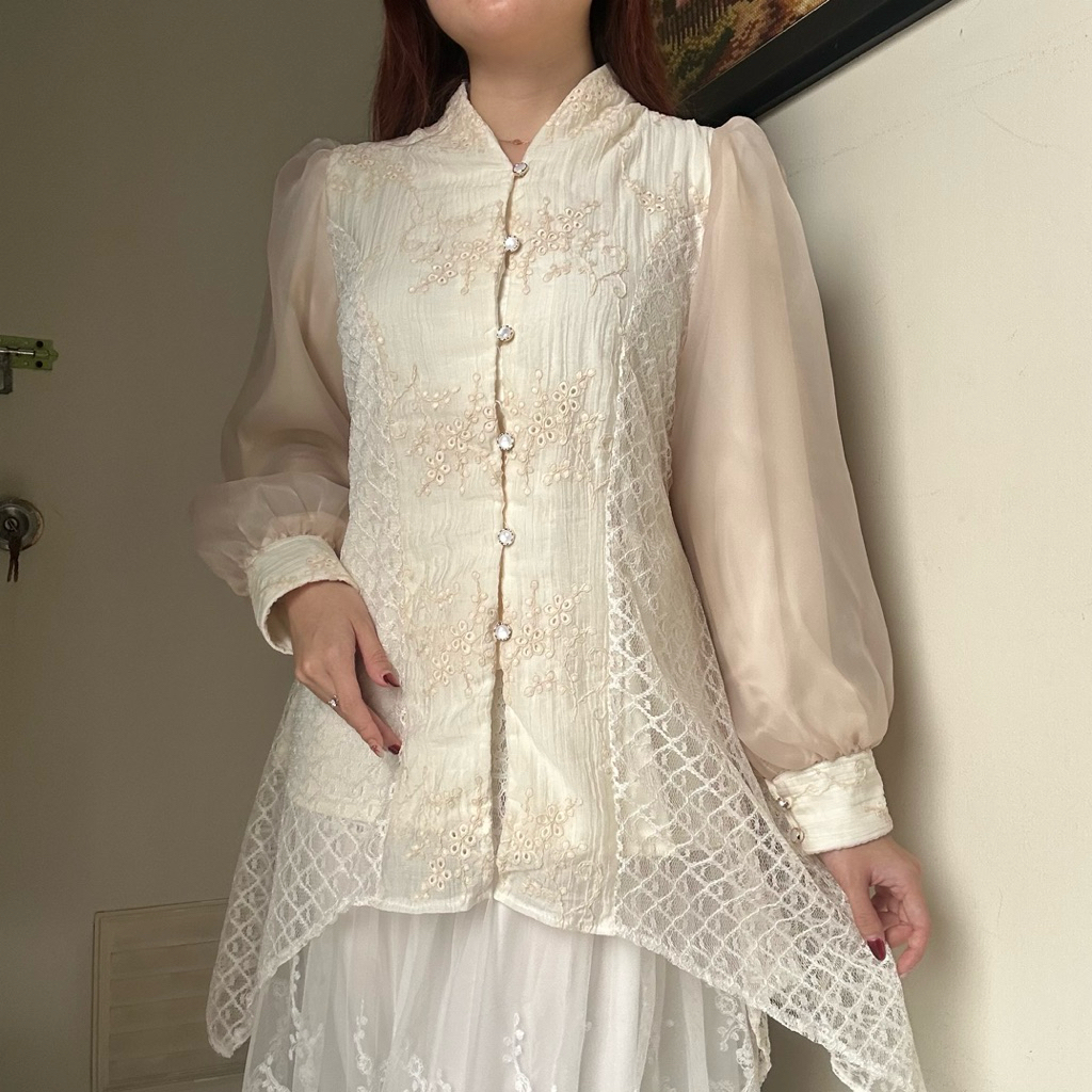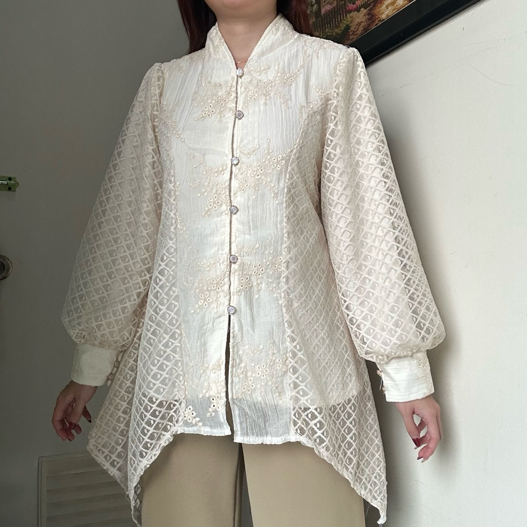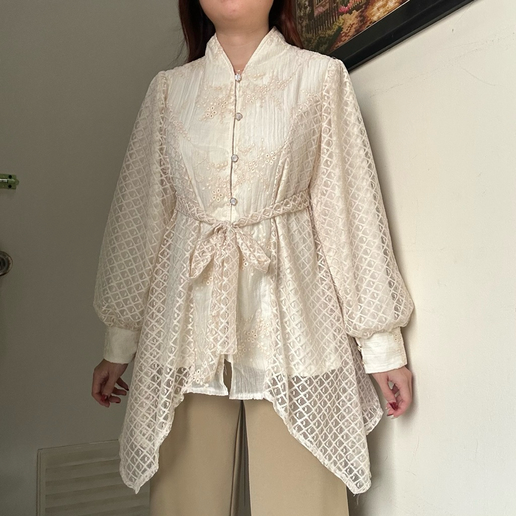Diandra Top Atasan Blouse Semi Tunik Wanita Baju Viral Kondangan Kebaya Tensel Bordir By Biel The Label