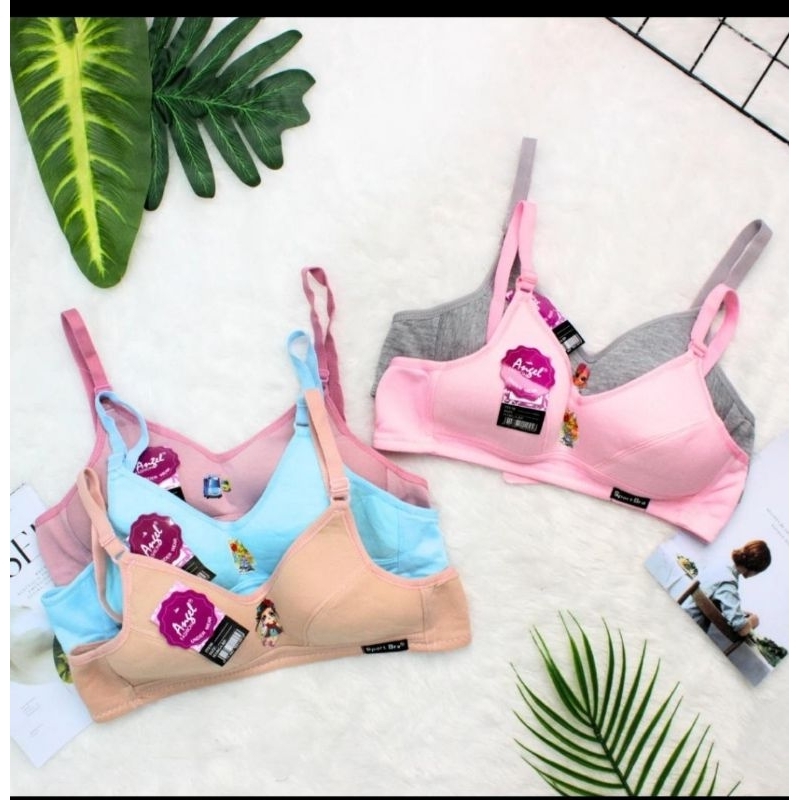 3 pcs Bra Remaja Busa Tipis,Tanpa Kawat Bahan Katun,Cup A Bra Anak Sekolahan