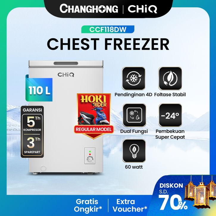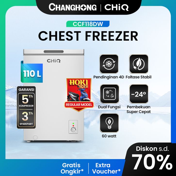 CHANGHONG CHiQ Chest Freezer Kapasitas 110 Liter - CCF118DW White
